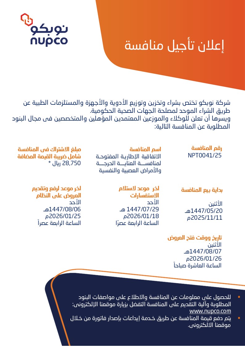 الاتفاقية الإطارية المفتوحة لمنافسة العناية الحرجة والأمراض العصبية والنفسية